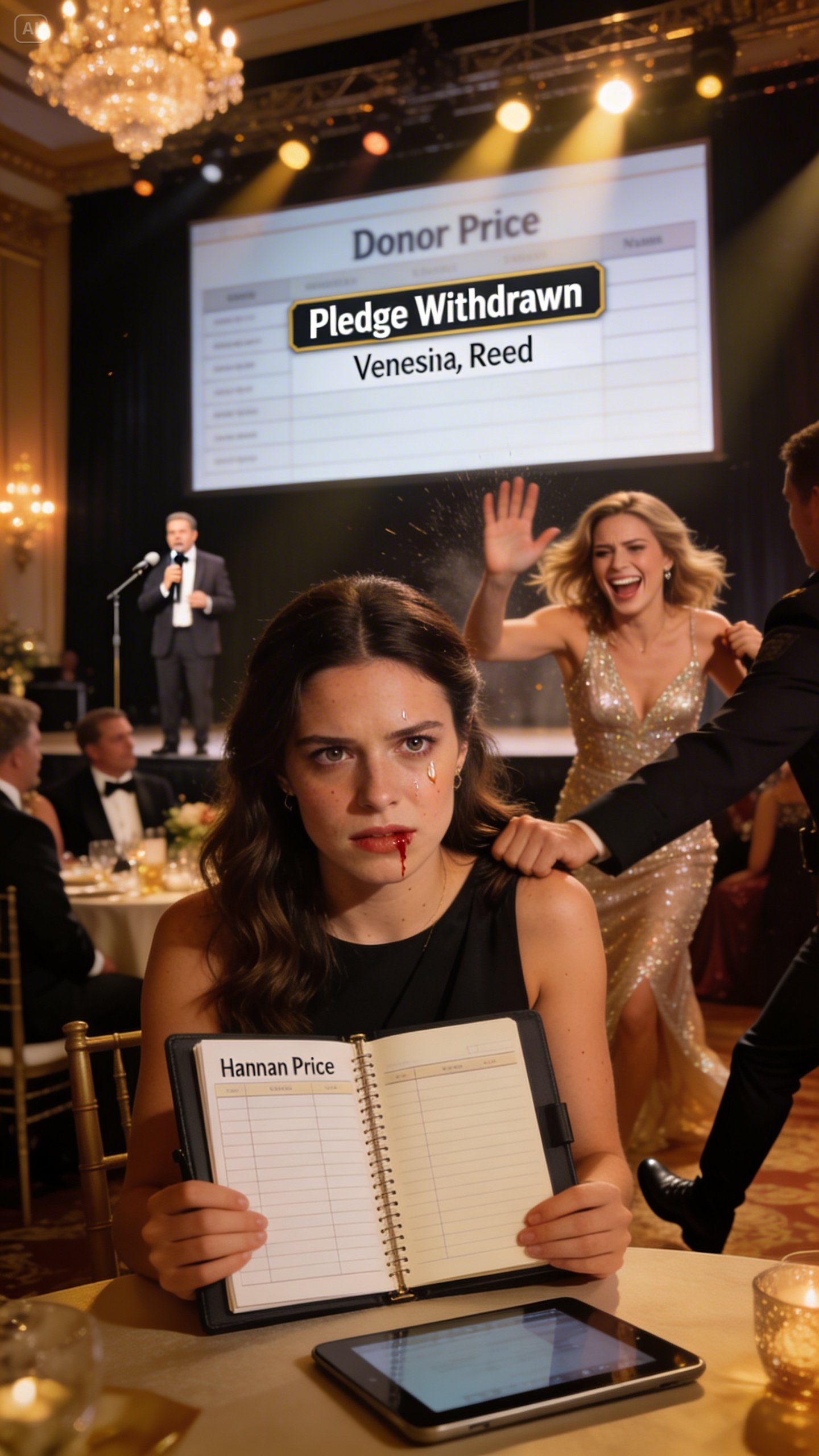 The gala was at a downtown hotel ballroom—uplighting, step-and-repeat wall, auction baskets, a donor board big enough to impress strangers. Vanessa arrived in a shimmering dress like she’d been invited to a movie premiere, not a charity event. She hugged donors like old friends and laughed too loudly at jokes that weren’t funny. Within ten minutes she’d somehow positioned herself as the emotional center of the room.