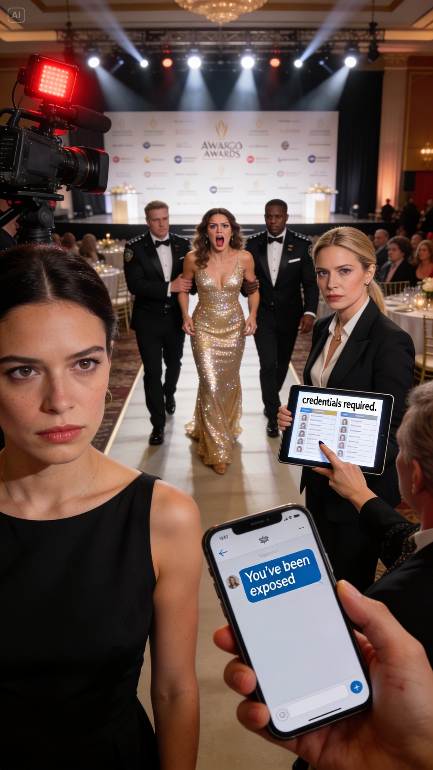 The cameras kept rolling as she was escorted out, glittering dress catching every light like the spotlight she couldn’t escape.