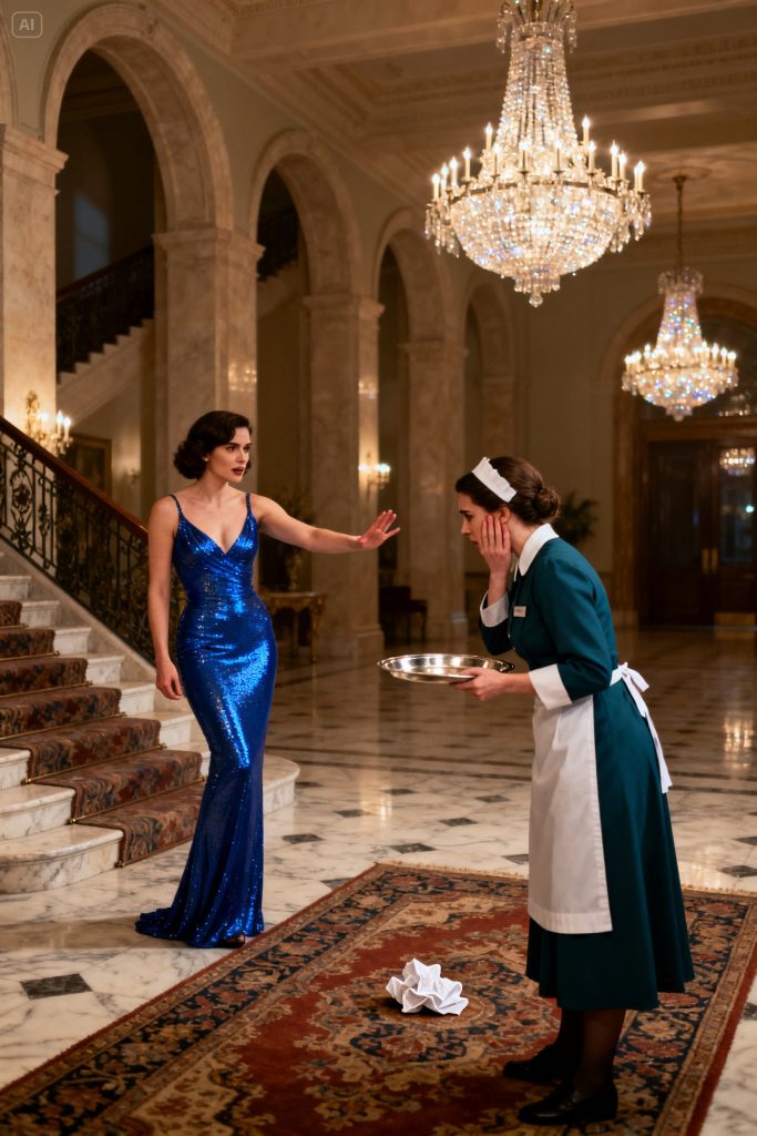 Her first day confirmed every rumor. Olivia’s footsteps snapped against the marble like small explosions. Her voice followed close behind. That afternoon, during tea service, Aisha’s hand trembled slightly, and a drop of tea splashed onto the hem of Olivia’s designer dress. The reaction was instant. A crack echoed through the hallway as Olivia slapped her across the cheek. Even the older staff gasped. Richard, descending the staircase, froze in disbelief. Aisha steadied her tray, eyes stinging, but her voice remained calm. She apologized, bowed her head… and stayed still.