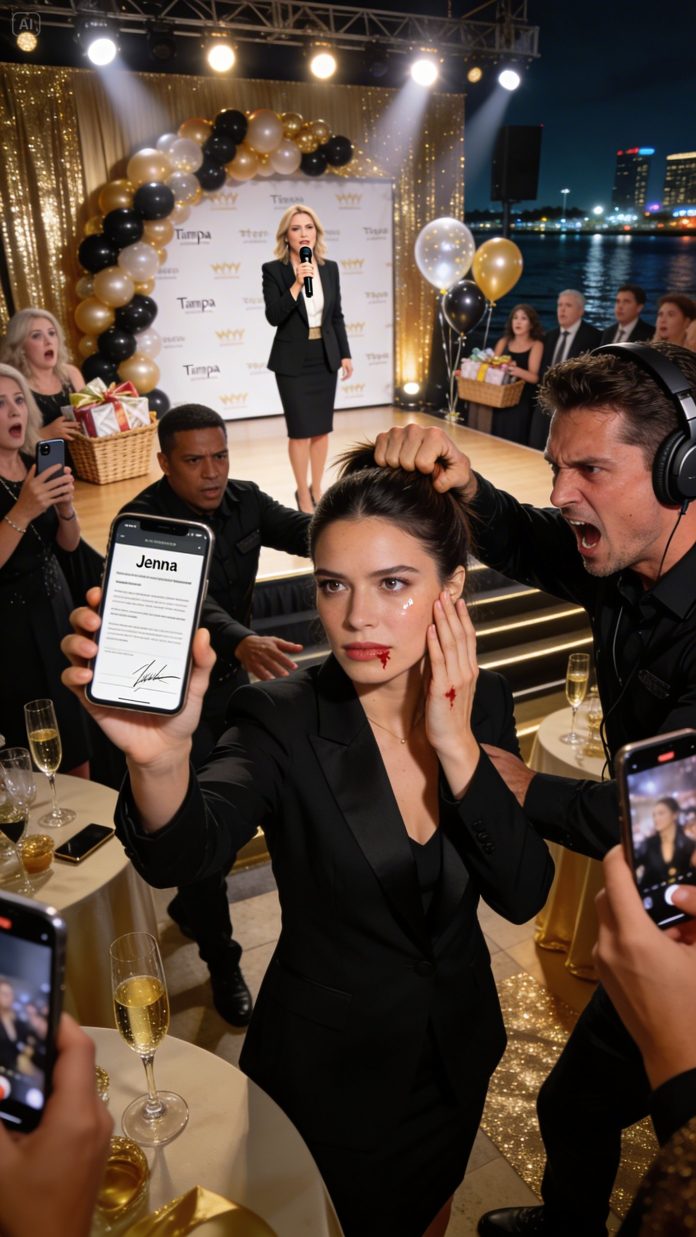 Nate pointed at the stage, then to the crowd, then to his family, like he was outlining how the night would go. Sloane’s face didn’t soften. It sharpened.
