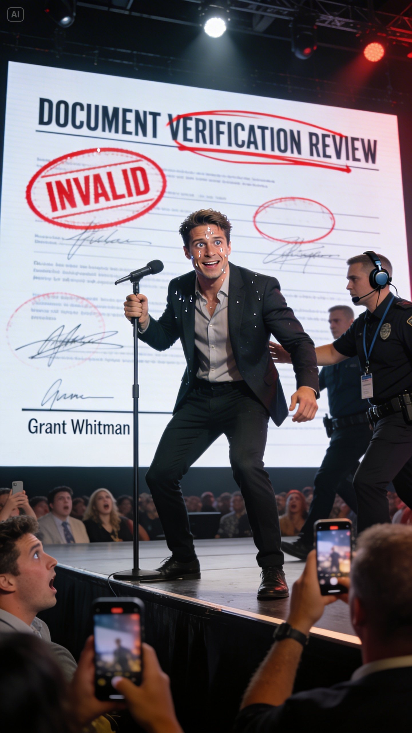 A security guard walked up the stage stairs and touched Grant lightly at the elbow. The gesture was polite, but the message was final.