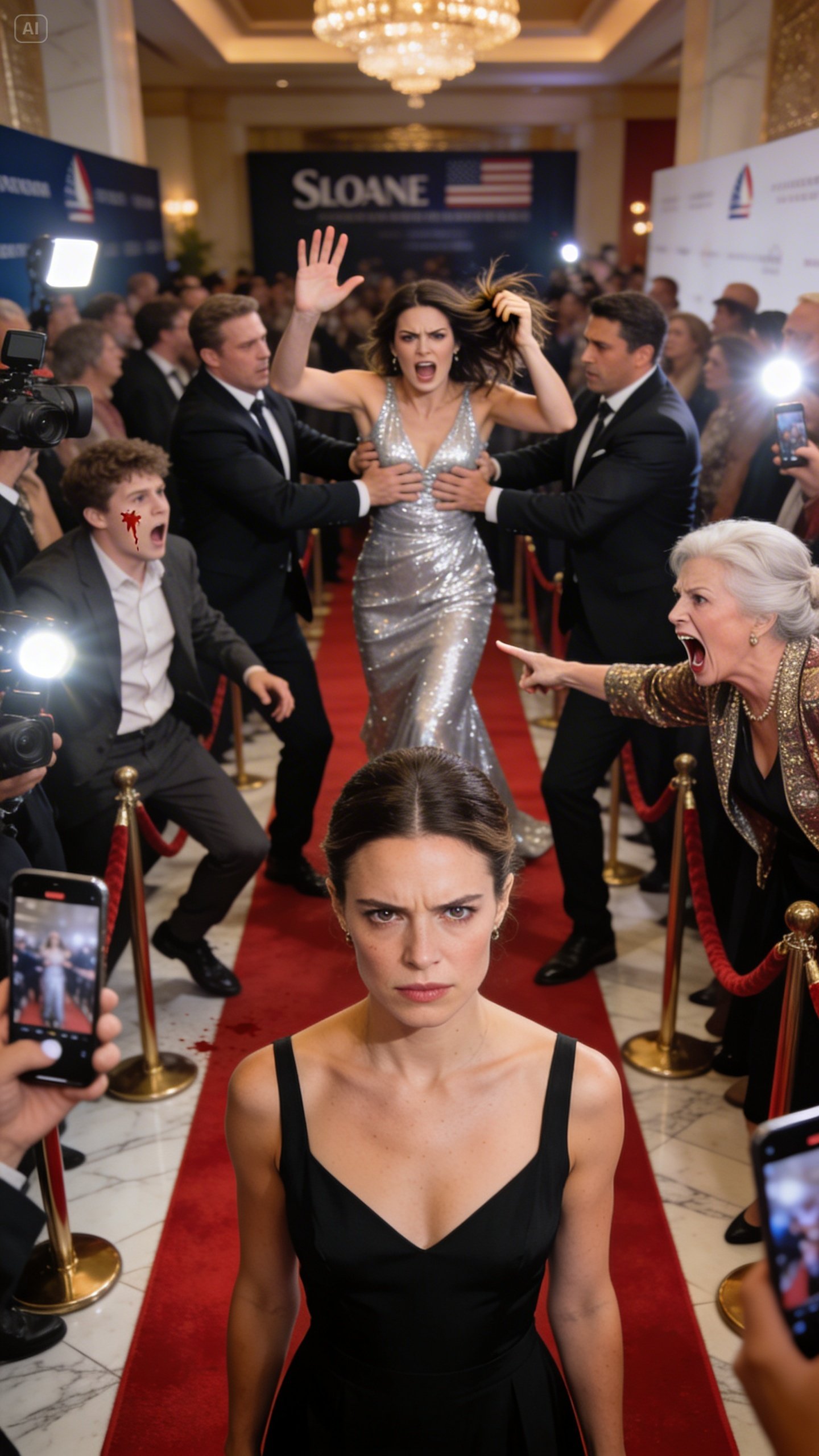 And as the guards guided Sloane toward the exit, the cameras followed, hungry and bright. Her heels clicked faster, slipping. She tried to straighten her dress, to reclaim dignity, but dignity doesn’t stick when you’ve built your life on pretending.