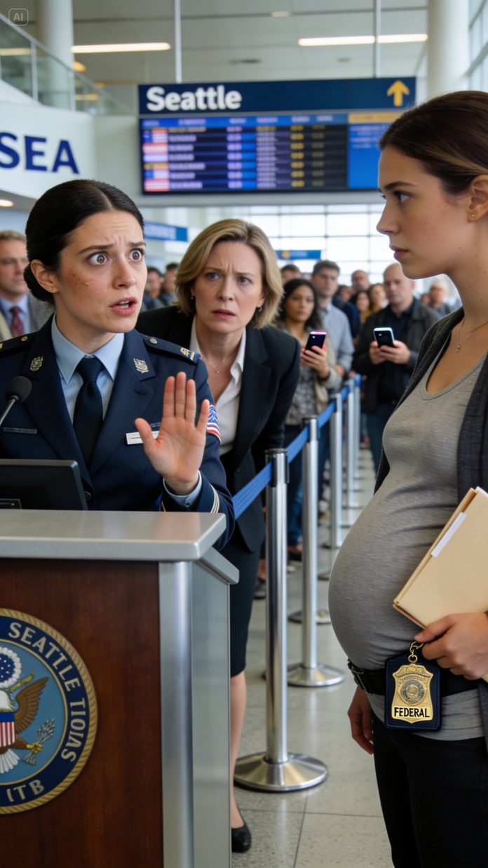 The line for pre-board and first class started drifting into the main lane. People pressed forward, restless. That’s when I noticed her: a pregnant woman standing slightly off to the side with a folder and a small carry-on, not demanding anything, not waving her arms, just… positioned in a way that narrowed the flow.
