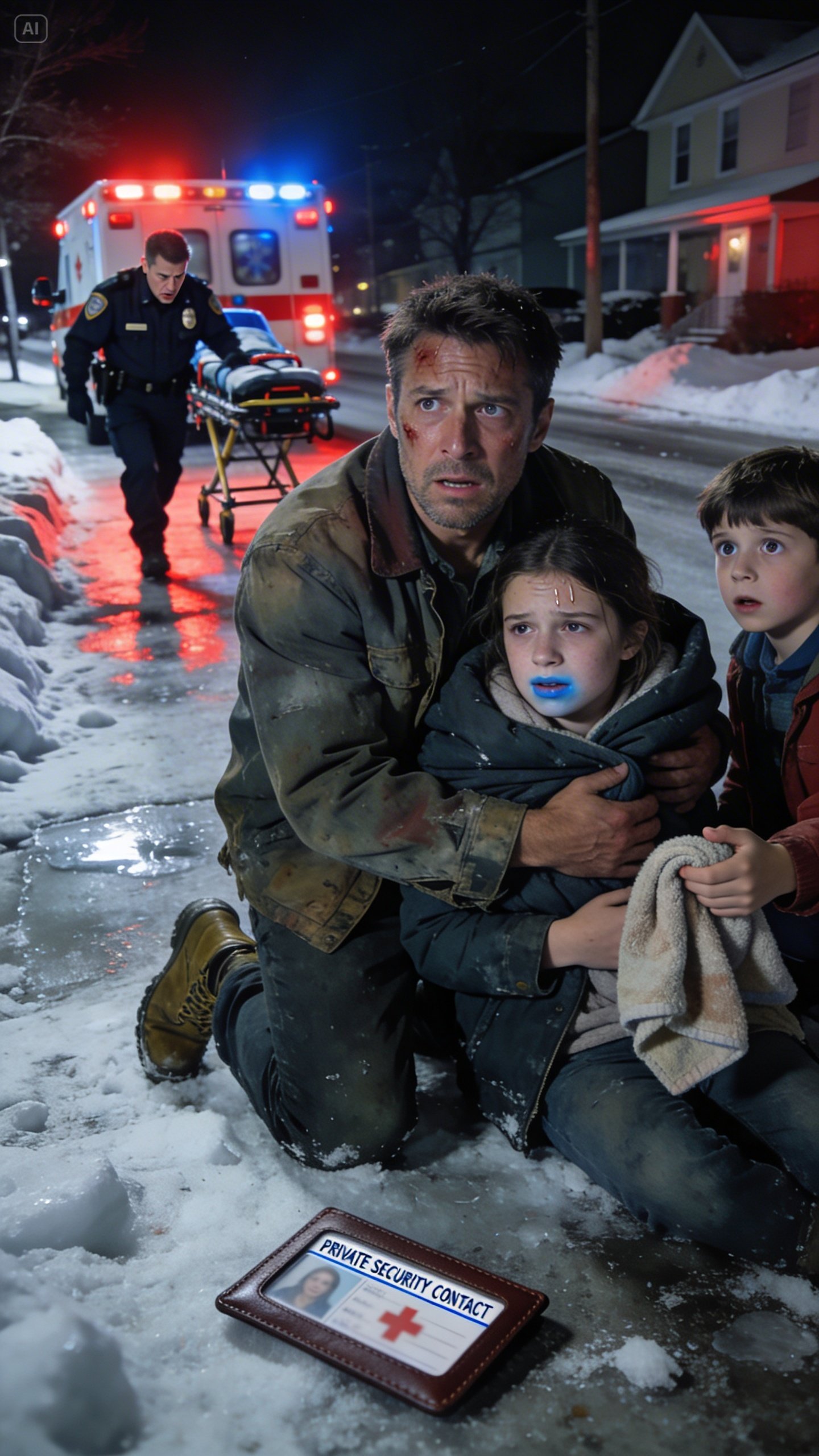 As they wheeled her toward the ambulance, something fell from her hoodie pocket—a small leather card holder. It flipped open on the asphalt, and I saw a school ID and a medical alert card.