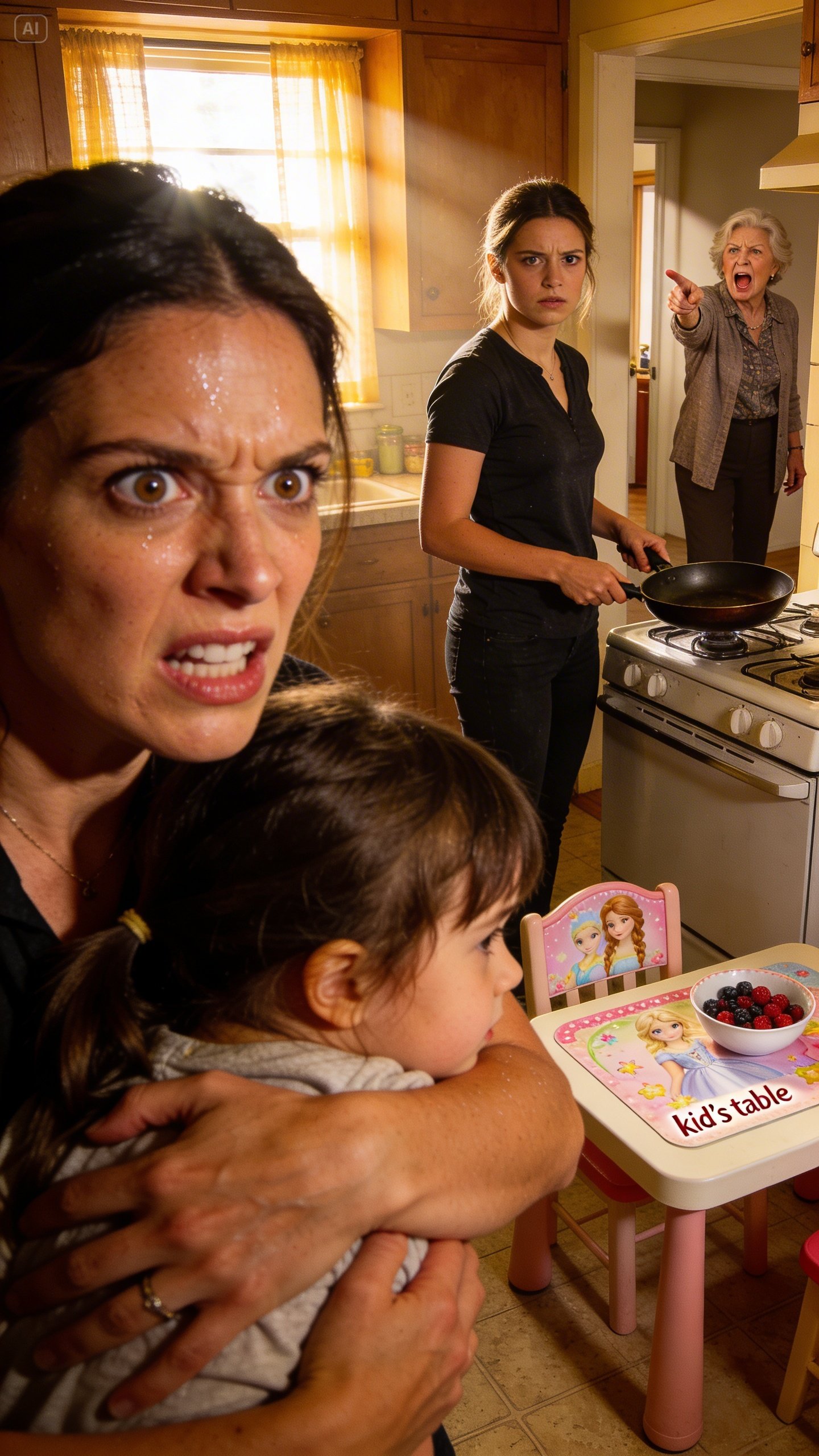 I tried to speak, but my mouth went dry. For a moment I saw my mother’s face—how quickly she’d prioritized the room’s “mood.” I saw my sister’s hand gripping the pan like she was correcting a misbehavior. I saw Harper’s little table like a throne my family guarded.