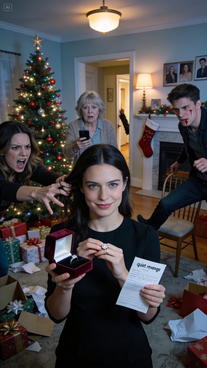 I didn’t flinch. I raised my hand so the diamond caught the tree lights and said, quietly, “Try.”