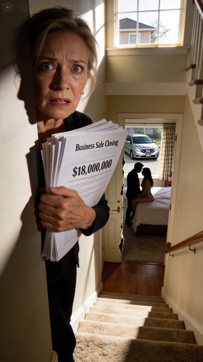 I moved toward the stairs with the closing packet clutched tight against my ribs. Each step felt too loud. At the top, our bedroom door sat slightly ajar—just enough to show a sliver of our life inside.
