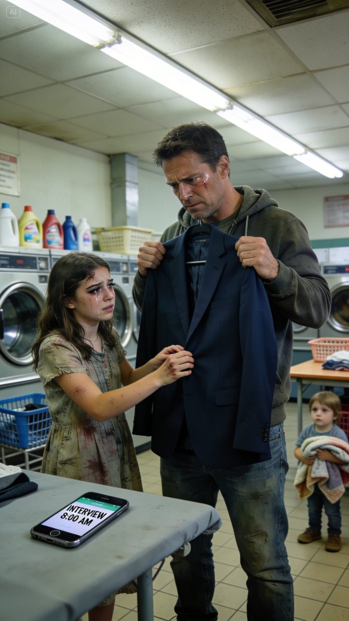 A teenager stood by the far wall near the change machine, hoodie pulled up, hands shaking around her phone like it was the only thing keeping her from falling apart. She was too dressed up for a laundromat—hair curled, mascara smudged, a cheap dress wrinkled like it had been pulled out of a bag and put on in a panic.