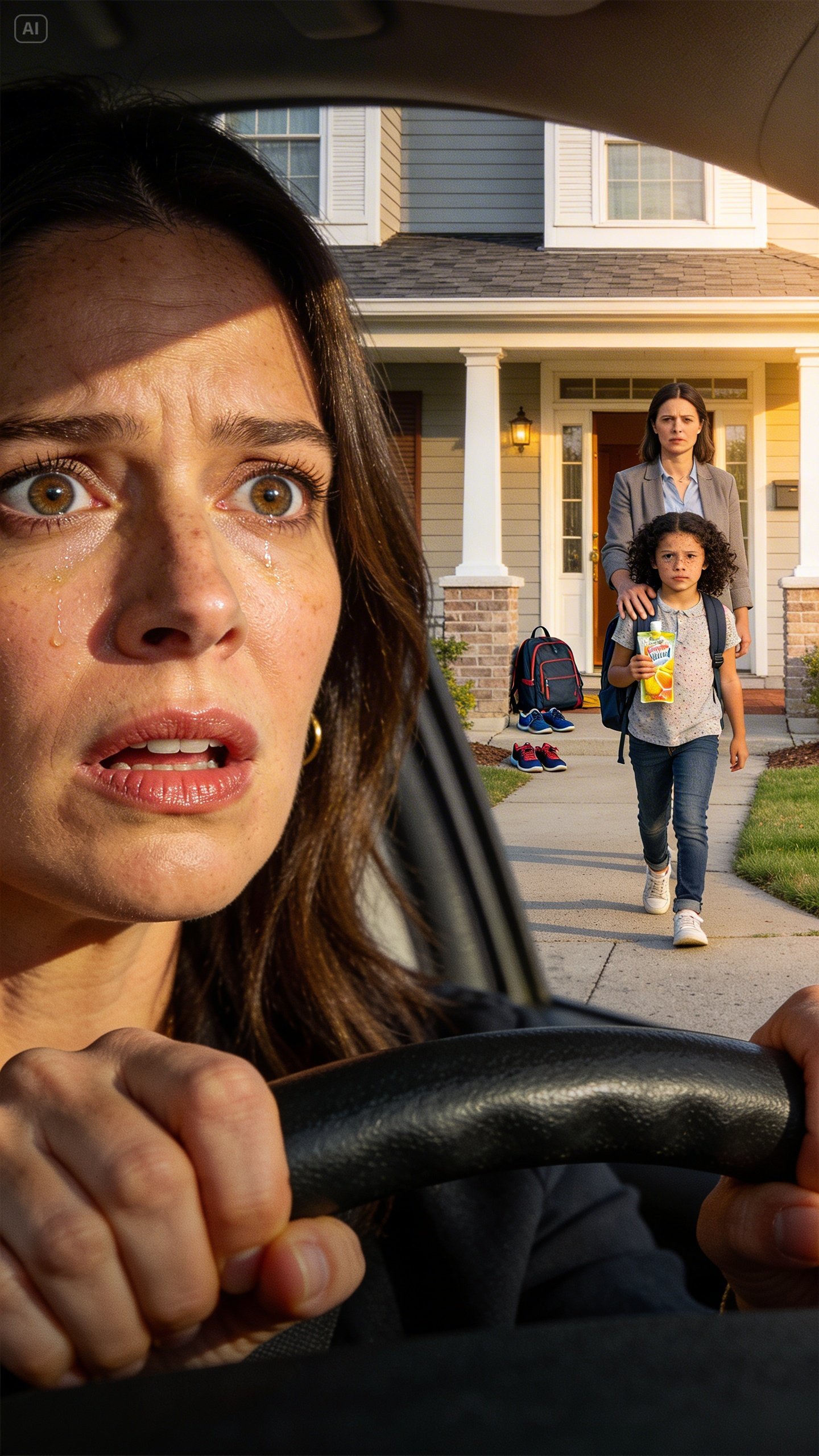 Her eyes swept right past my car, and I felt the cold punch of being seen even if she didn’t show it. Her smile tightened almost imperceptibly. She guided the girl back inside and closed the door.