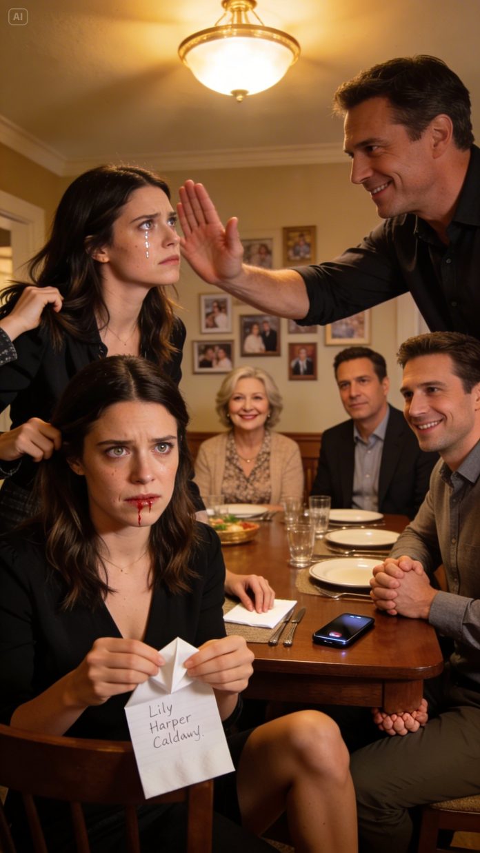 I forced a laugh at something I didn’t hear. My fingers crumpled the note in my lap. My heart started to pound in that slow, heavy way it does when your body knows something your brain hasn’t accepted yet.