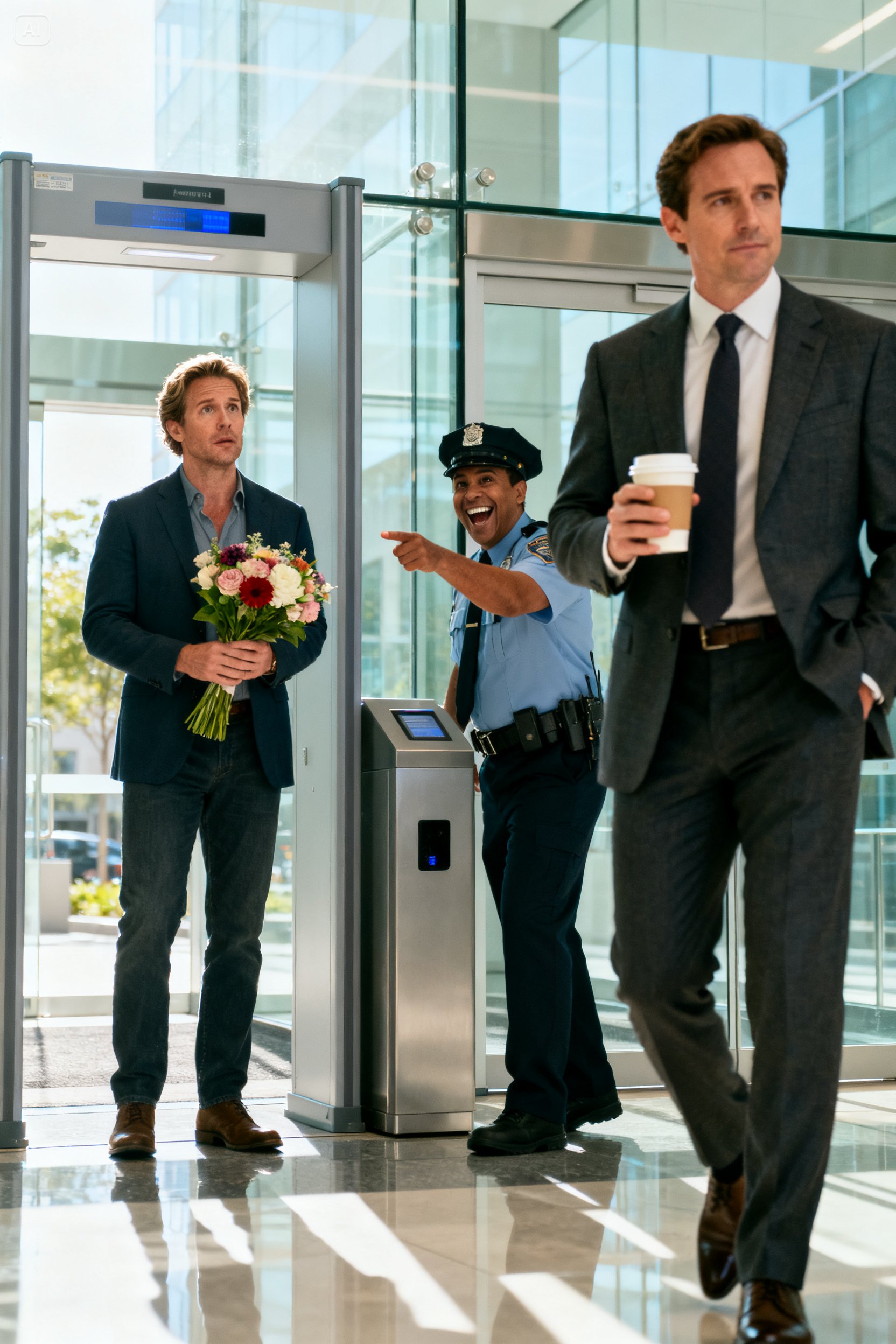 A man in a tailored suit stepped through the revolving doors. Young, confident, carrying Madison’s favorite coffee order. The guard waved at him.