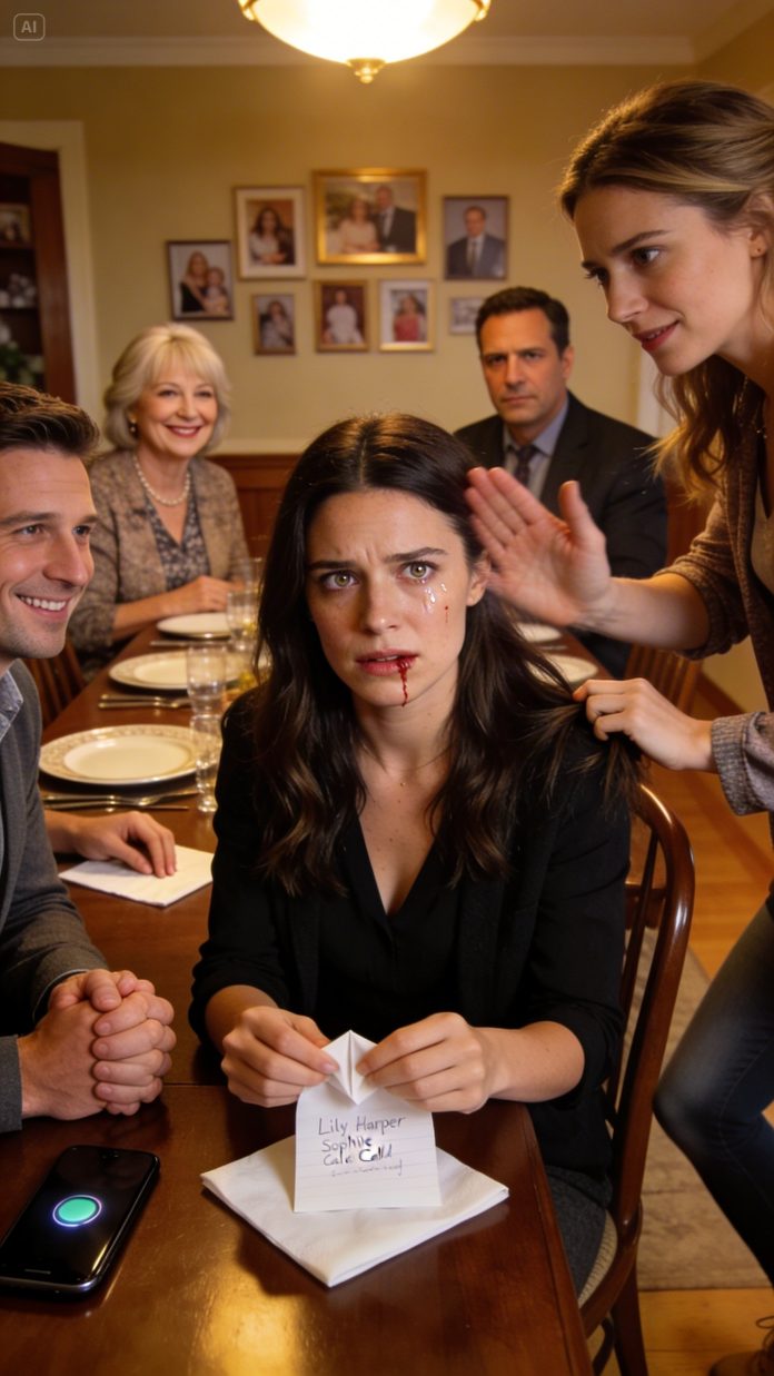 I almost laughed from confusion. Sophie wasn’t dramatic. She barely spoke at these dinners. But when I looked up, she wasn’t joking. Her eyes were wide, frantic, begging me not to react. She gave the smallest shake of her head, like a warning: don’t ask questions here.