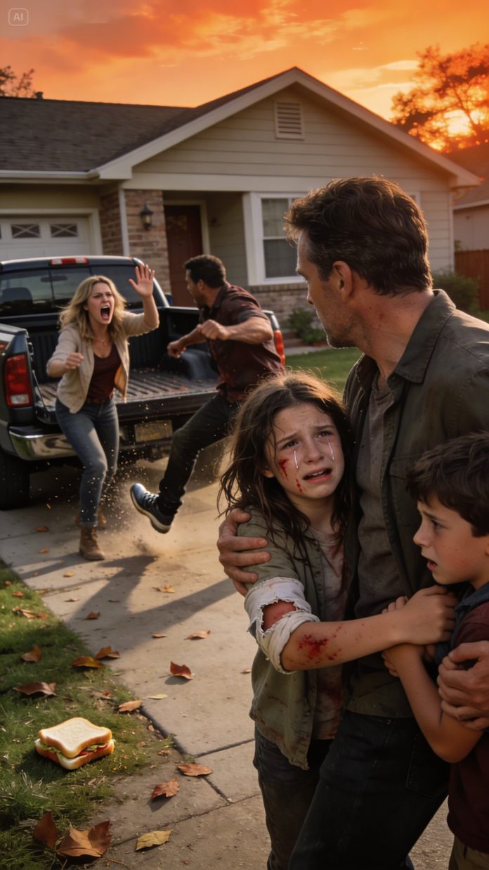 Then Daniel noticed the bruise on Eli’s wrist, the yellow edge of an older one on Ava’s arm, and just as he opened his mouth to ask about it, a truck roared up in front of the house. Ava froze. Eli dropped half his sandwich. And before Daniel could step toward the gate, a woman climbed out of the passenger side and screamed, “There you are, you ungrateful little thieves.”