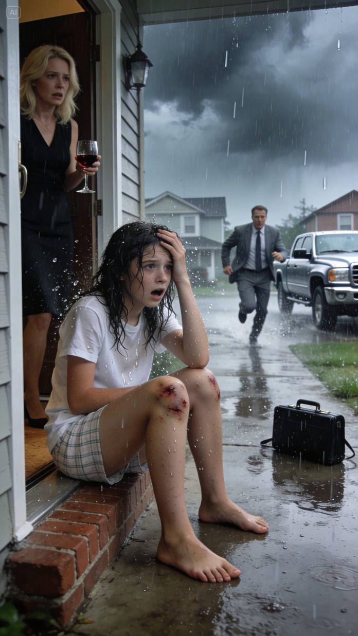 When my father’s truck pulled in and his headlights swept across the yard, I thought—stupidly, desperately—that this was the moment everything would stop. That he would see me soaked and barefoot and understand.