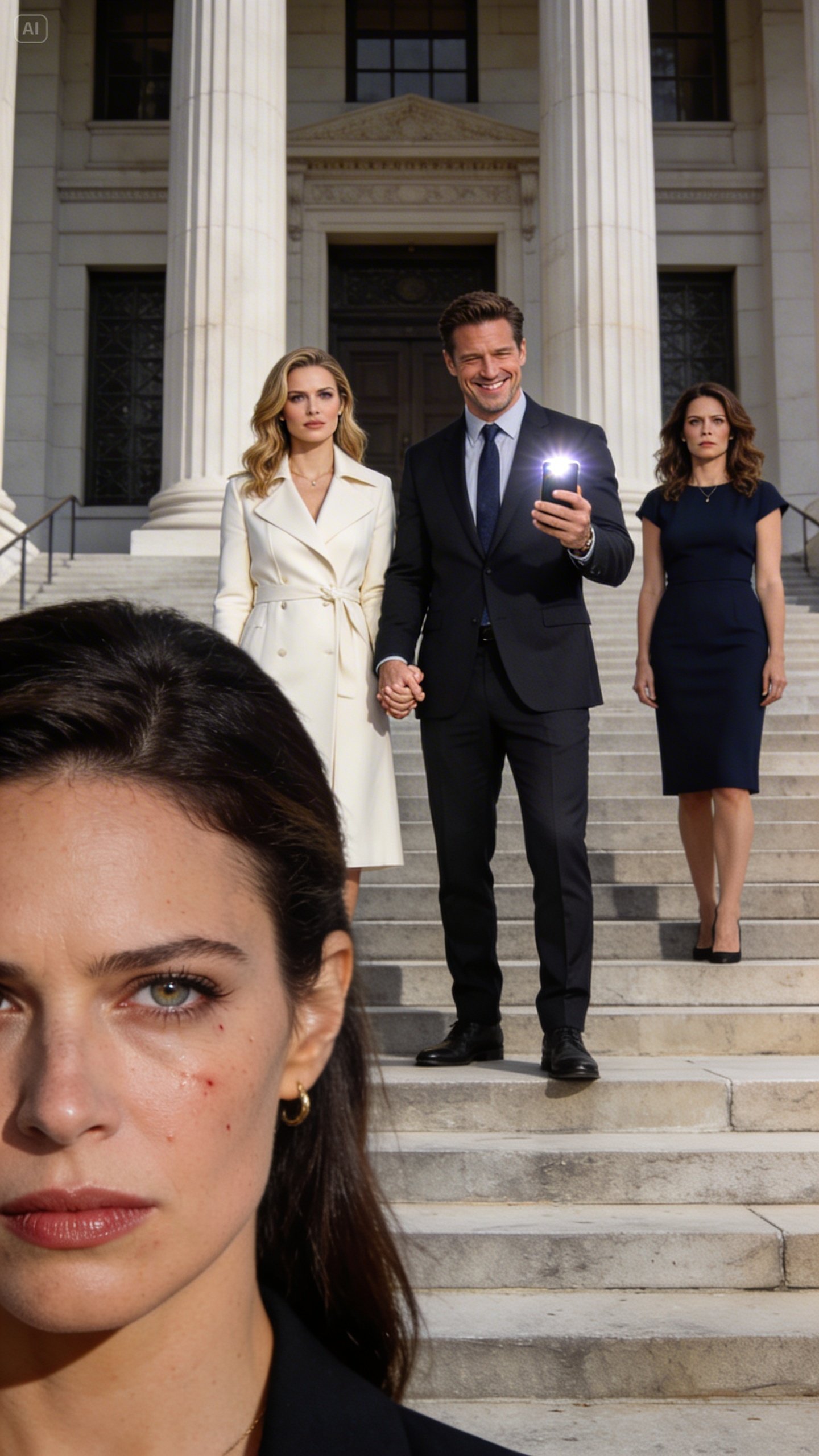 We were still near the courthouse entrance, surrounded by winter coats, legal folders, and strangers finishing their own painful afternoons. But Daniel had always been easy to read in crisis, because panic stripped him of the polish honesty never did. First came the tension in his shoulders. Then the jaw. Then the complete loss of that smooth, superior calm he liked to carry in public.