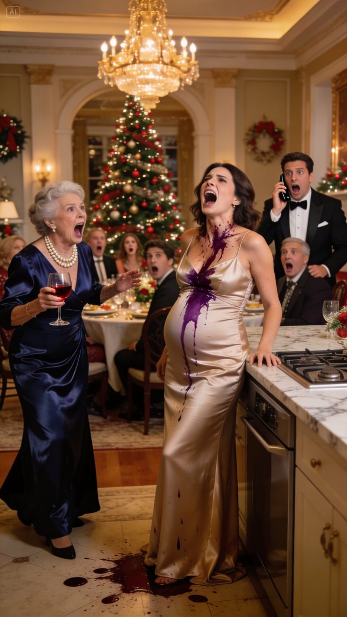 Before I could step back, she shoved me with both hands. My body slammed sideways into the edge of the counter, and a violent cramp seized my stomach so sharply I could barely breathe.