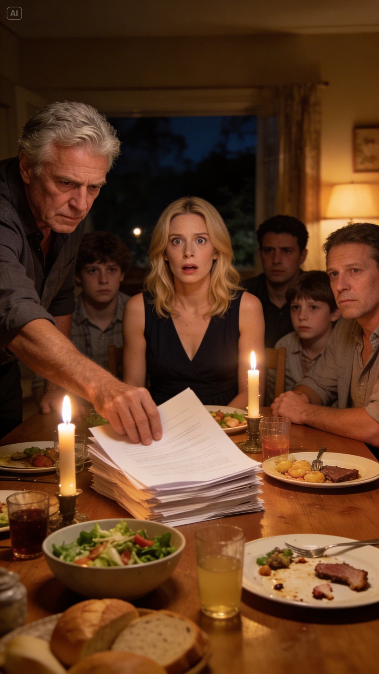 Father stood at the dining table with both hands braced on the wood. The birthday newspaper was still there like a pathetic prop. Mother stood at the sink doing nothing. Grant was by the wall, trying to look like backup.