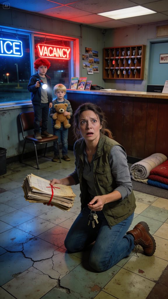 So I drove to the Blue Cedar with half a tank of gas, a dead phone charger, and humiliation hot enough to feel almost cleansing. The office smelled like dust, stale coffee, and old paper. Caleb fell asleep on the lobby sofa before ten. Mason curled behind the counter in a blanket and called it camping. I stayed awake, opening drawers and cabinets, looking for tax files, deed records, anything that would help me sell the place quickly and forget my father had ever thought it belonged to me.