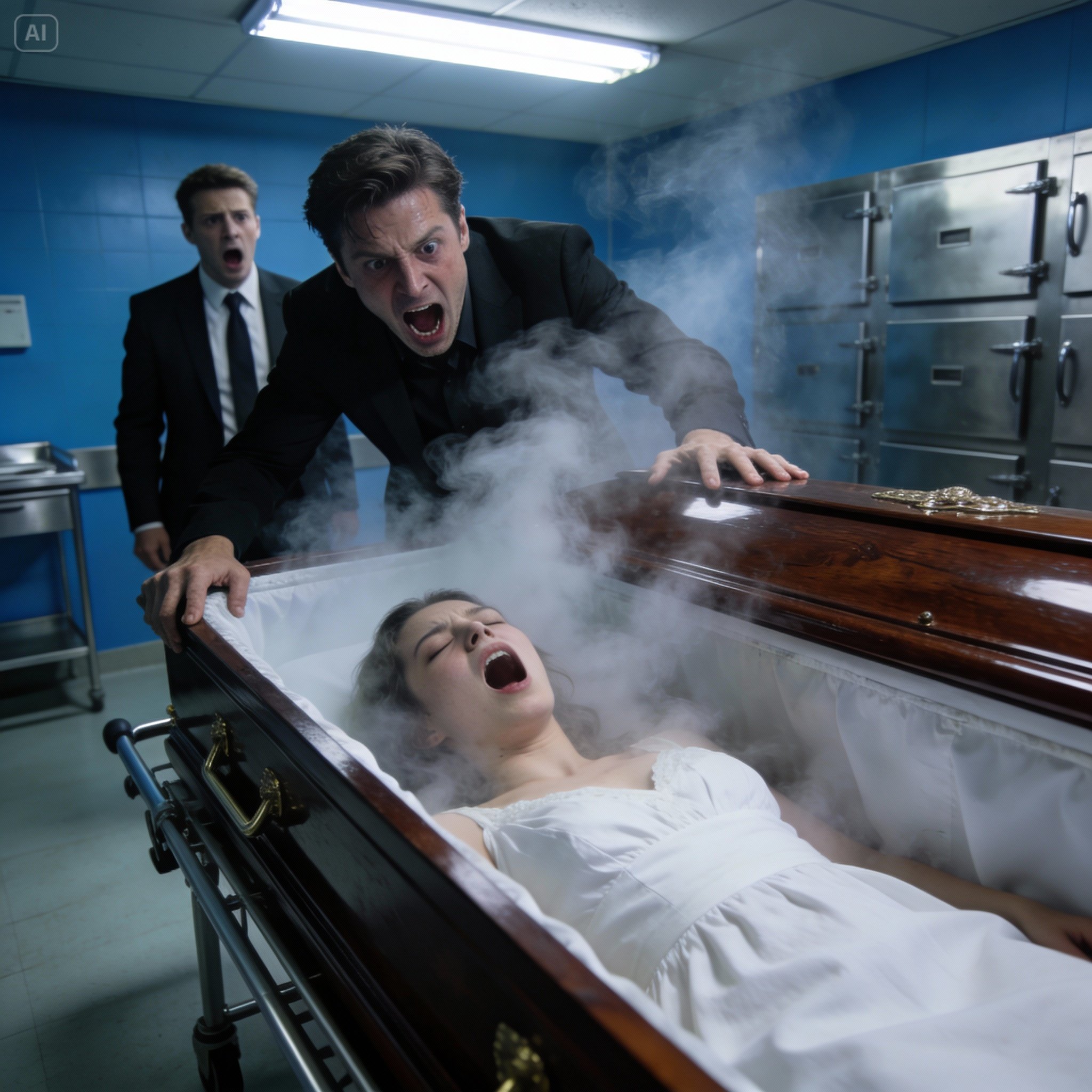 Orders flew. Procedures were abandoned. The cremation was canceled mid-process. Emily was rushed out of the building still inside her coffin, lights flashing against the walls like something torn from a nightmare.