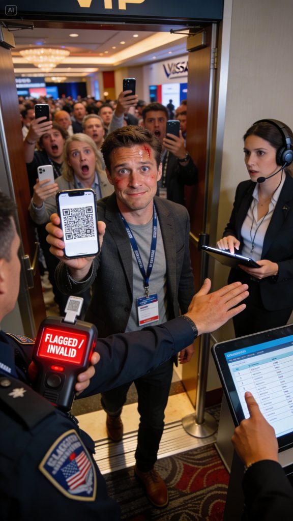 Priya didn’t look at our booth. She didn’t care about brand association. “Invalid code,” she repeated. “Not issued by the conference. Step away from the entrance.”